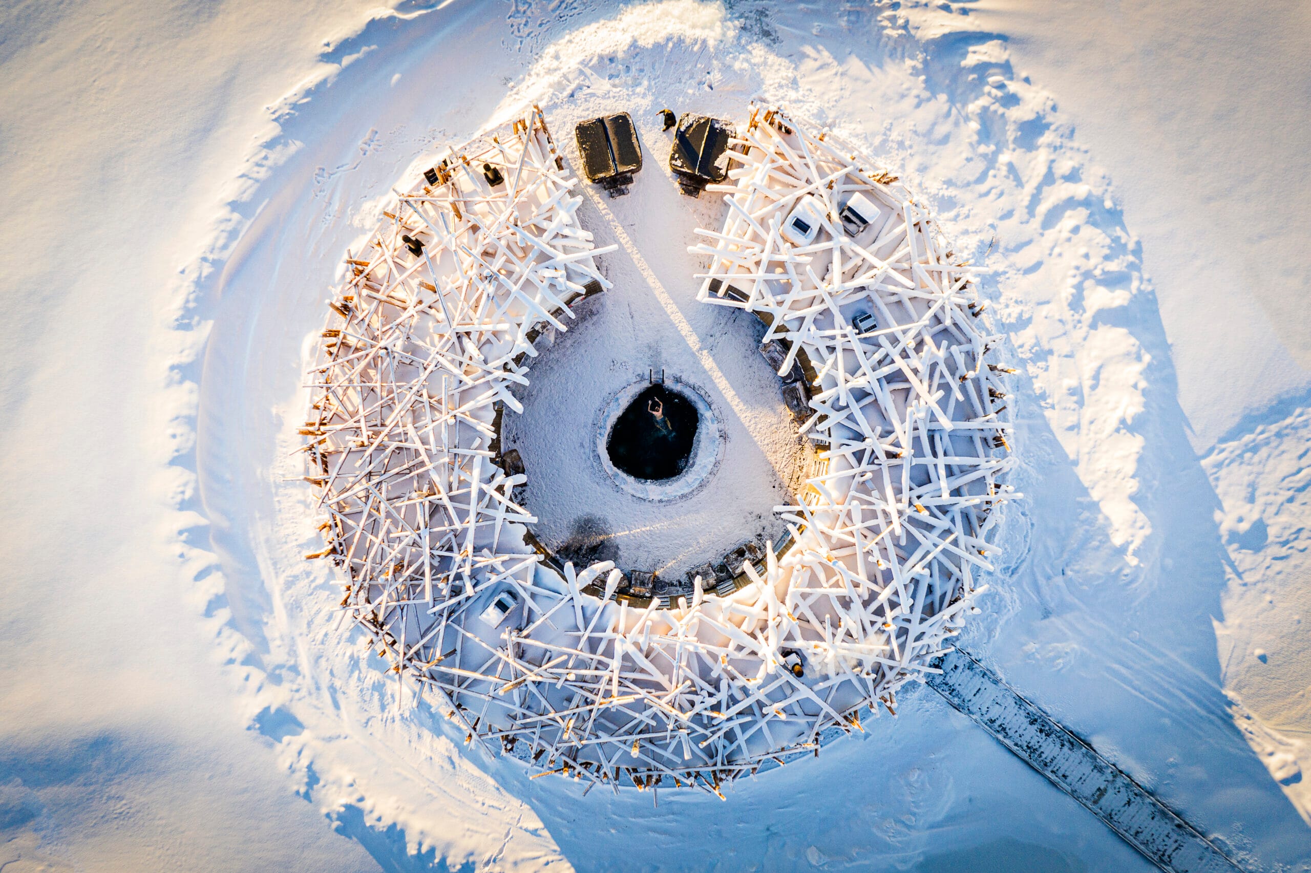 In the center of the main building is a cold bath straight down into the Lule River, surrounded by a sauna, treatment rooms, jacuzzi, and more.