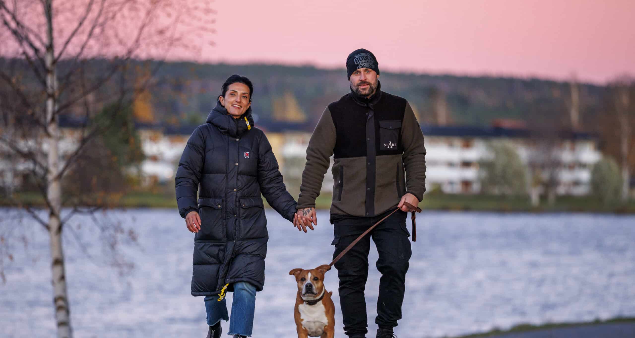 Hon, maken Tobias och hunden Nero lämnade Gävle för Tobias jobb på Stegra. Genom Bodens inflyttningsservice och jobbmatchning fick även Samira snabbt jobb och är nu arbetsmarknadskonsulent på JobbCenter.